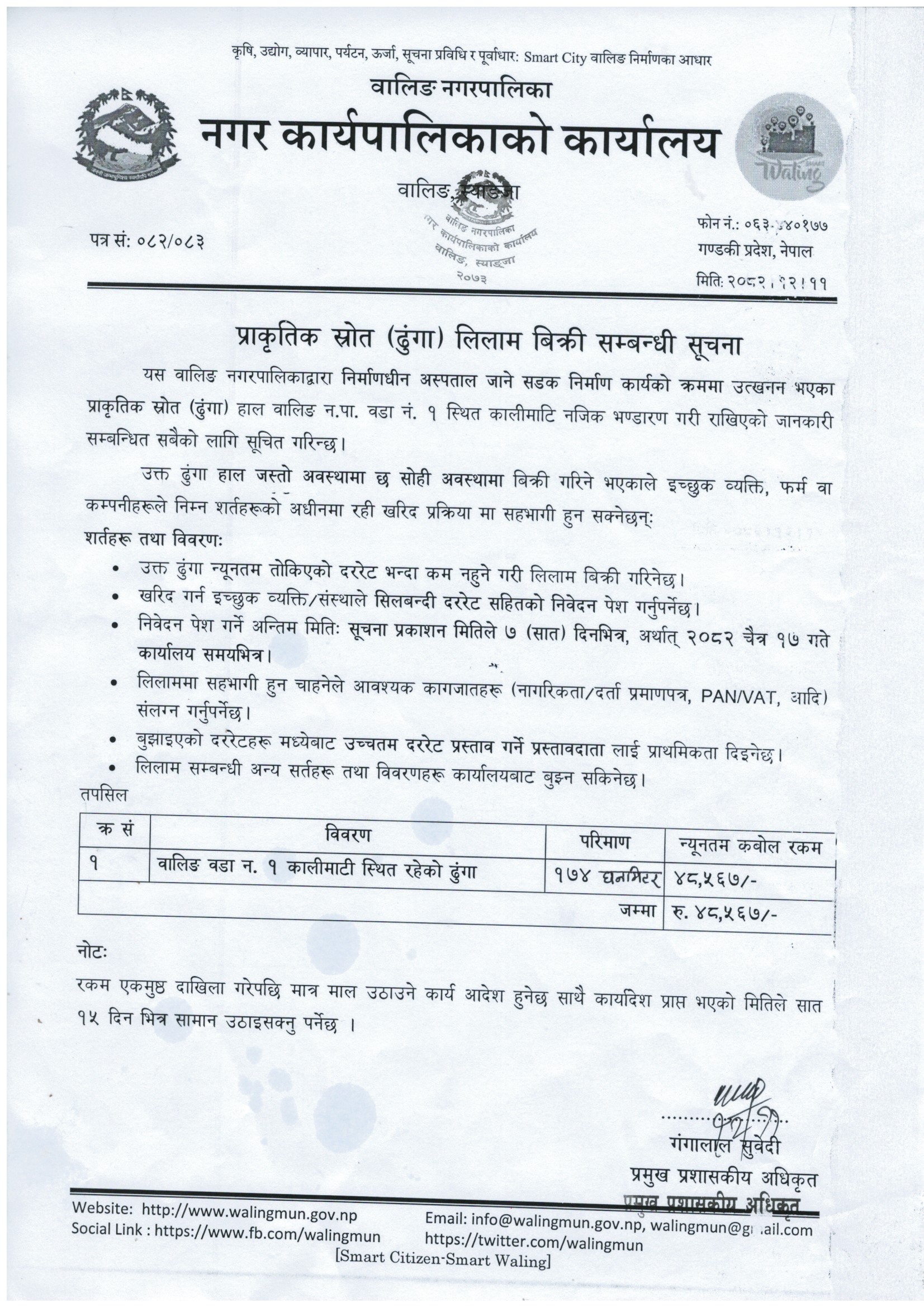 प्राकृतिक स्रोत (ढुंगा) लिलाम विक्री सम्बन्धी सूचना!