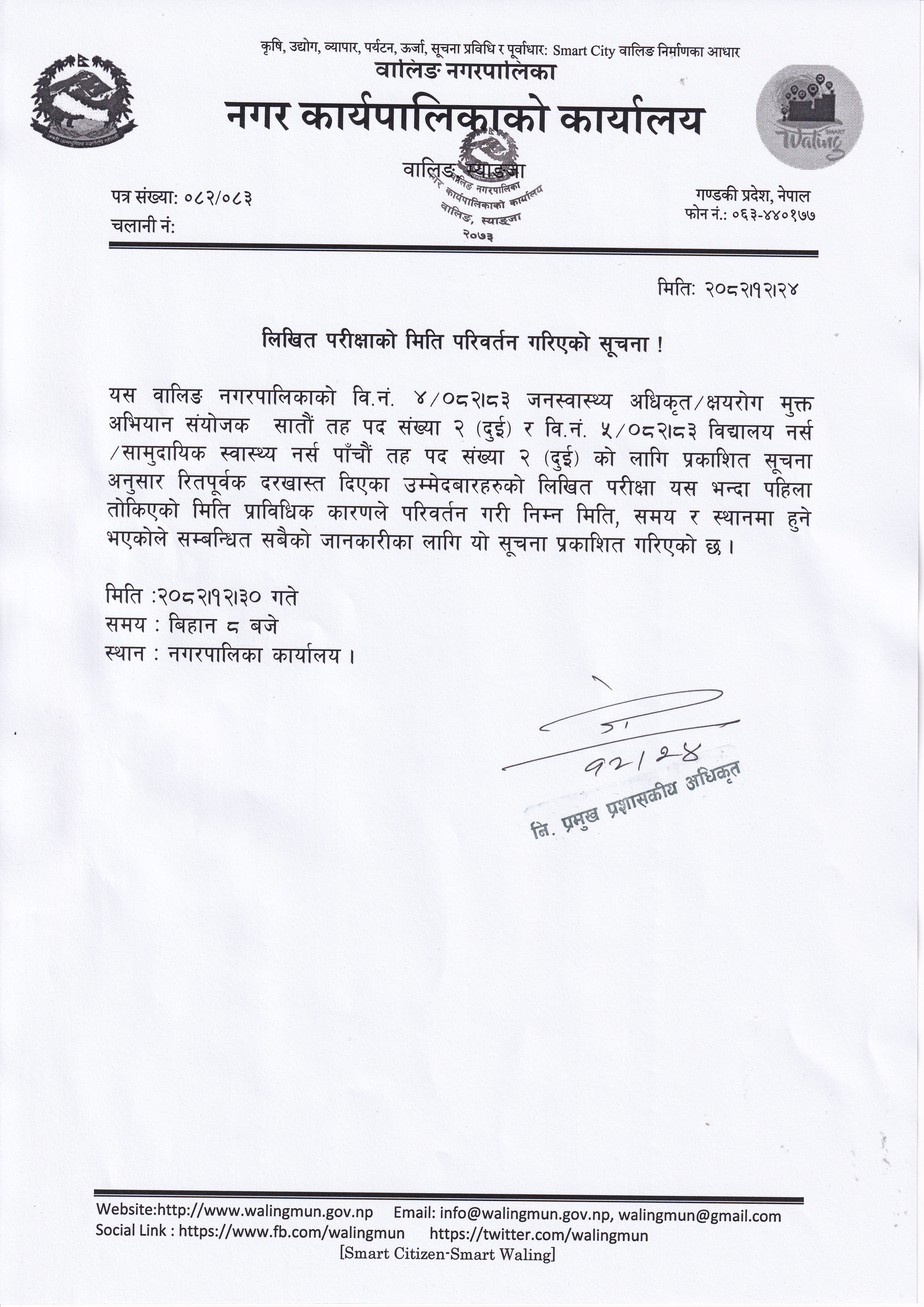 लिखित परीक्षाको मिति परिवर्तन गरिएको सूचना!