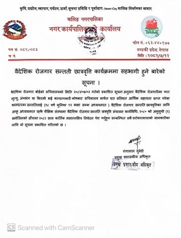 वैदेशिक रोजगार सन्तति छात्रवृत्ति कार्यक्रममा सहभागी हुने सम्बन्धी सूचना।