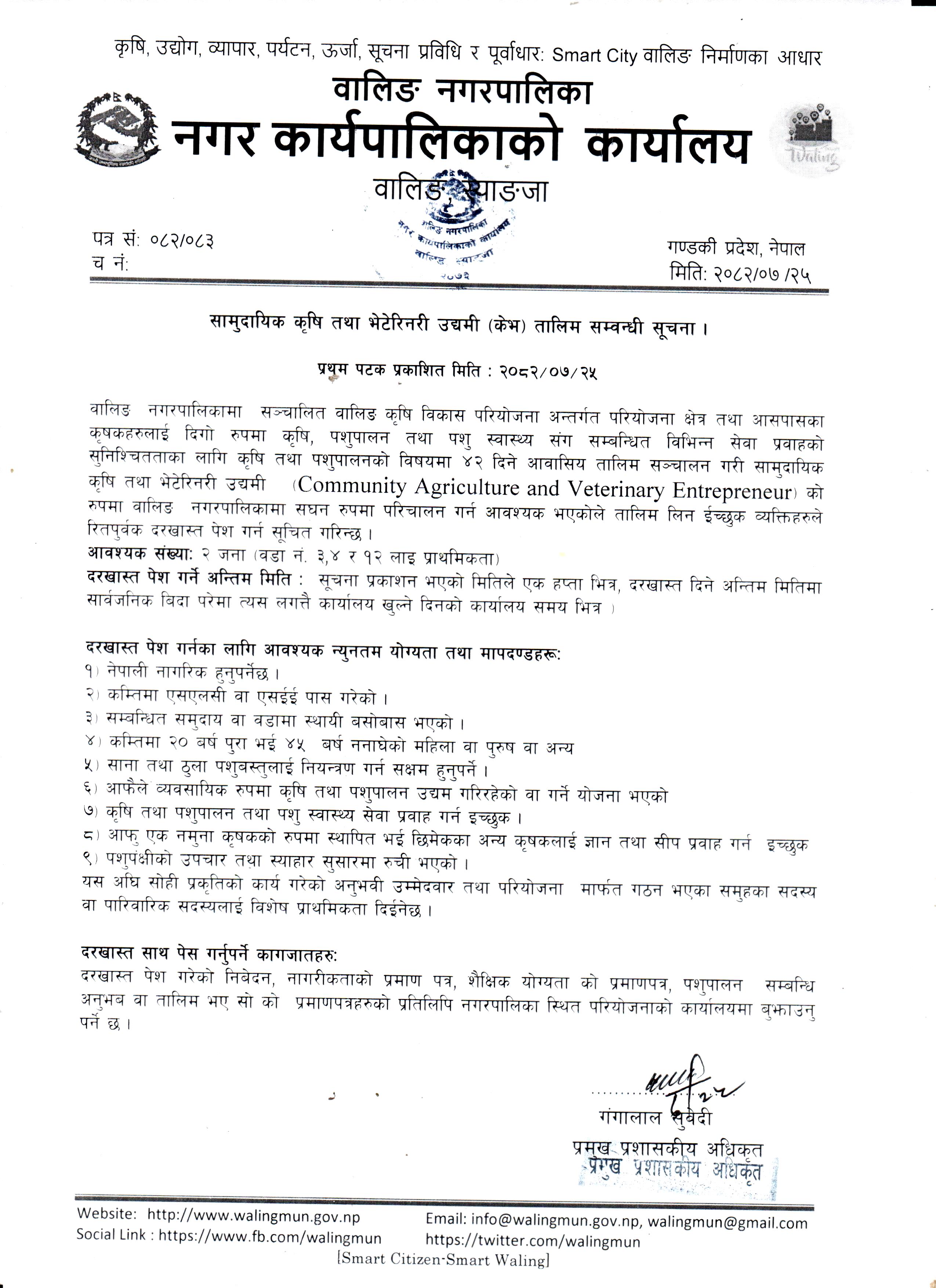 » सामुदायिक कृषि तथा भेटेरिनरी उद्यमी (केभ) तालिम सम्बन्धी सूचना!