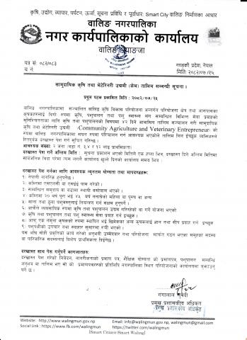 सामुदायिक कृषि तथा भेटेरिनरी उद्यमी (केभ) तालिम सम्बन्धी सूचना!