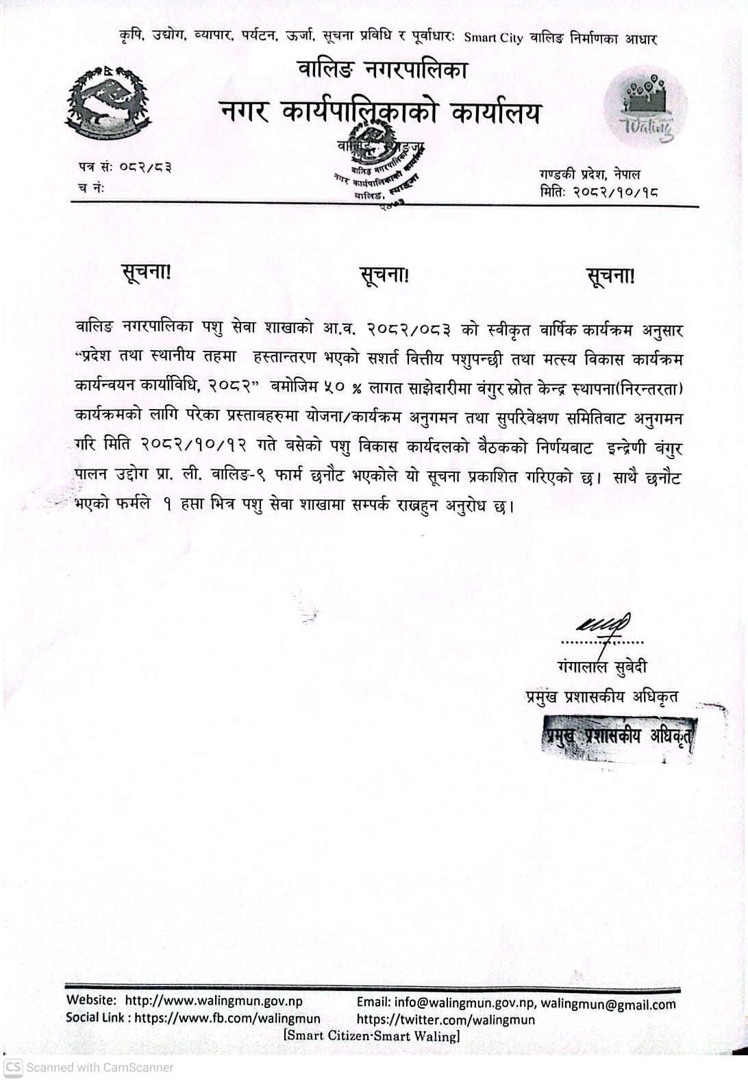 वालिङ नगरपालिका कार्यालय, स्याङजाको फोहर व्यवस्थापन सम्बन्धी प्रस्ताव आव्हानको सूचना