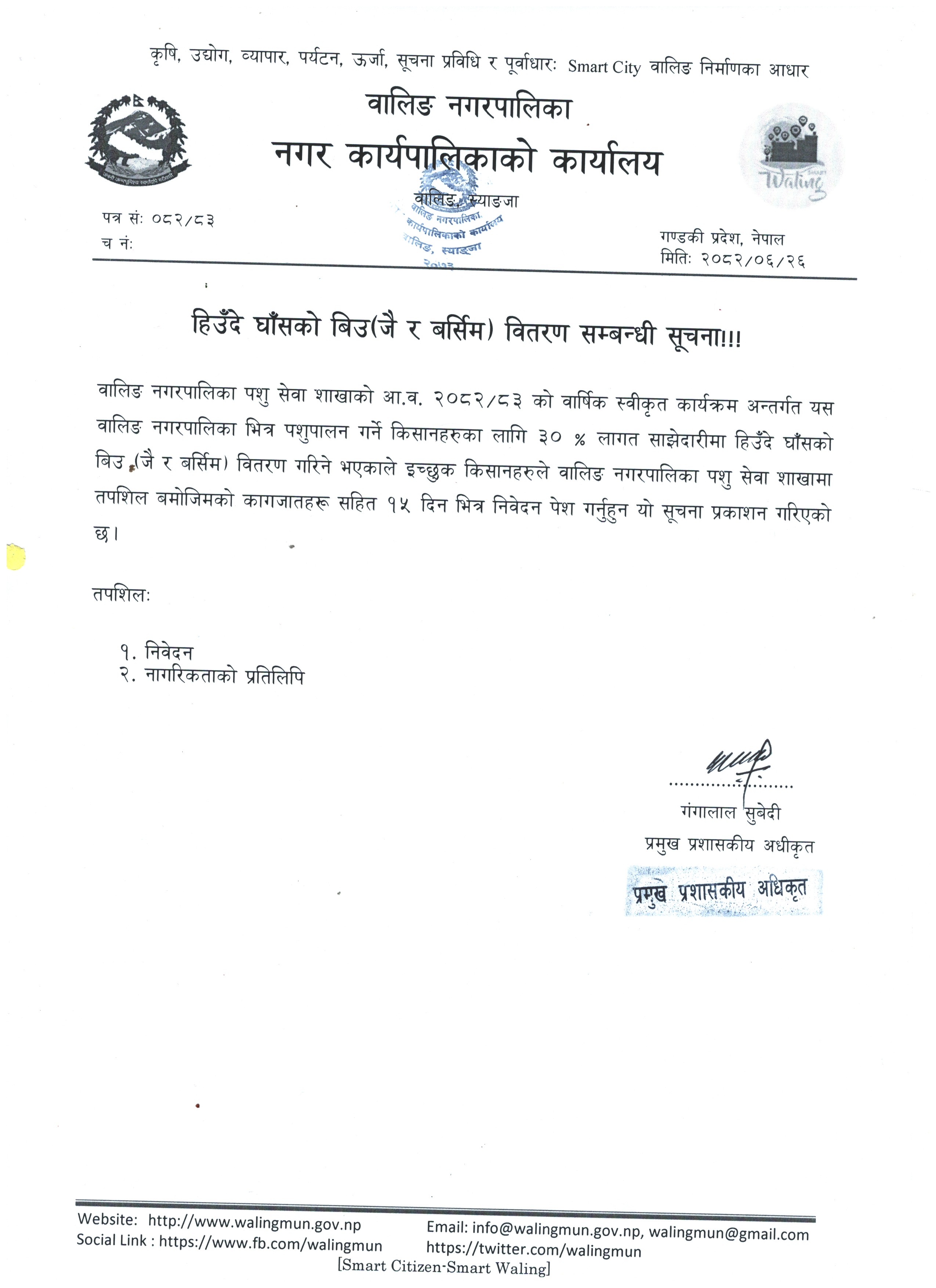 » हिउँदे घाँस(जैँ र बर्सिम)को बिउ वितरण सम्बन्धी सूचना