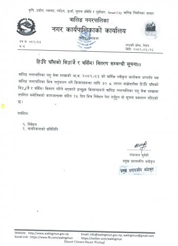 वालिङ नगरपालिका कार्यालय, स्याङजाको फोहर व्यवस्थापन सम्बन्धी प्रस्ताव आव्हानको सूचना