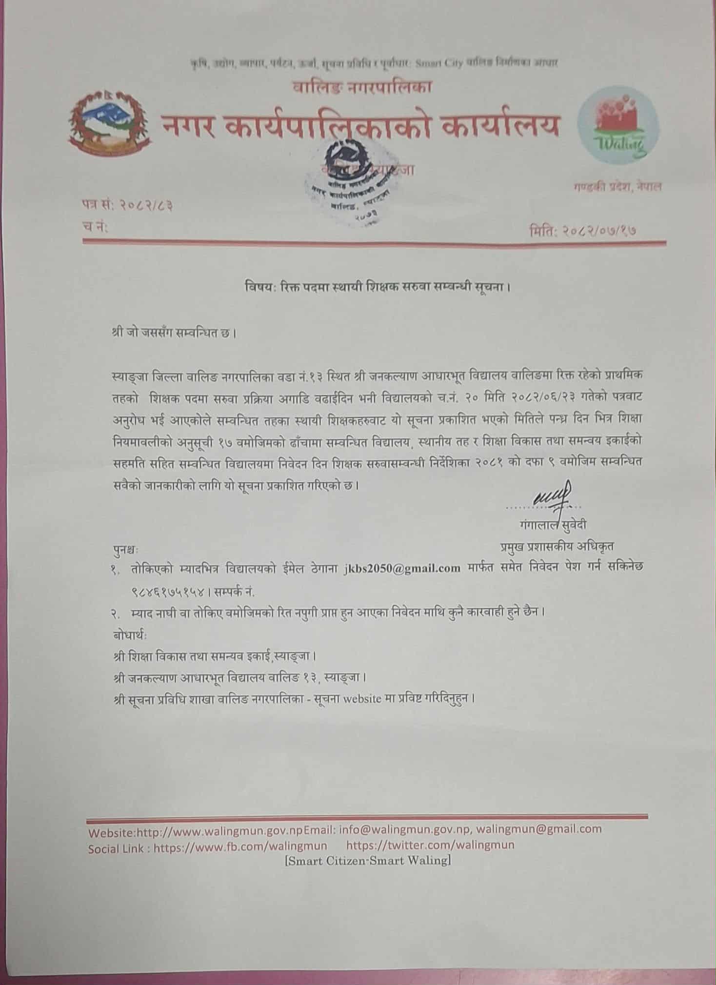 रिक्त पदमा स्थायी शिक्षक सरुवा सम्बन्धी सूचना!