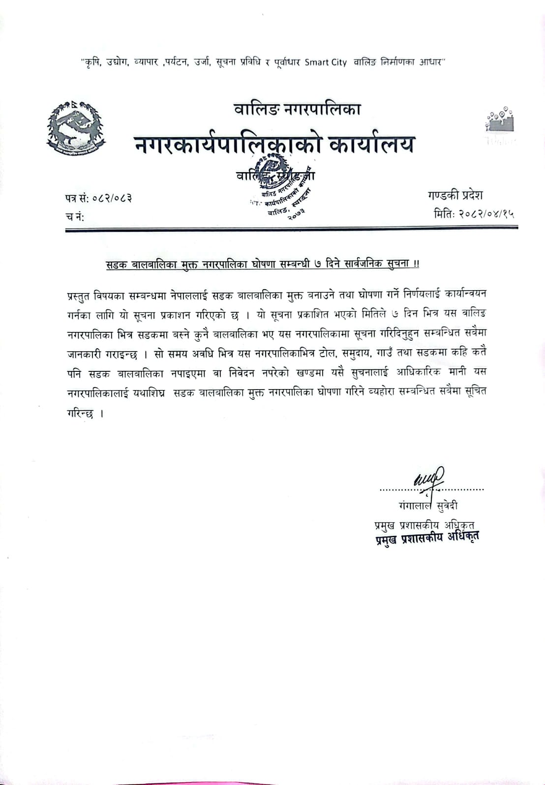 सडक बालबालिका मुक्त नगरपालिका घोषणा सम्बन्धी सात दिने सूचना!
